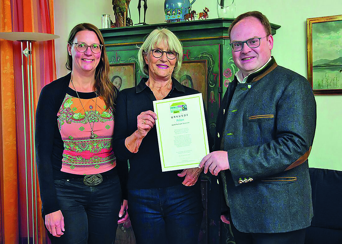Die Fairtrade-Gemeinde Prien lädt am Mittwoch, 25. März von 9.30 bis 12 Uhr zum Austausch- und Vernetzungstreffen »Fair kann mehr« im Chiemsee Saal ein. Die Veranstaltung richtet sich an Hoteliers, Gastronomen, Vermieter, Einzelhändler sowie ansässige Hersteller und verfolgt das Ziel, regionale Versorgungsstrukturen zu erhalten und durch persönliche Begegnungen nachhaltig weiter auszubauen. Im Mittelpunkt steht der Austausch zwischen Produzenten und Akteuren aus Tourismus, Gastronomie und Handel, um neue Kontakte zu knüpfen, faire und regionale Produkte stärker in lokale Wertschöpfungsketten einzubinden und damit nachhaltigen Konsum sowie den regionalen Absatz langfristig zu stärken.
